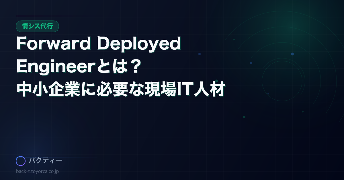 Forward Deployed Engineerとは、顧客現場に入り込み「答えるだけでなく動く」ことで業務課題を解決するエンジニアの役割です。この考え方は、IT担当が不在の中小企業にこそ必要なIT支援のあり方を示しています。